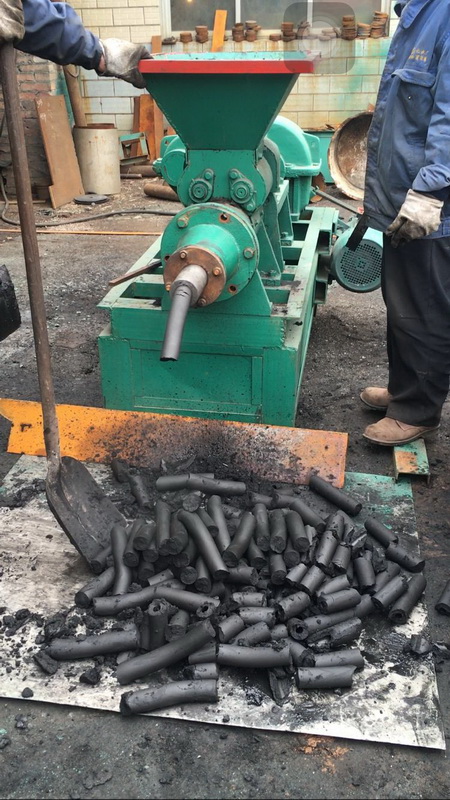 炭粉成型机又叫秸秆煤炭成型机或炭粉制棒机是一种废物再生能源燃料,发热量高于同类原料的木炭,比一般煤高,无烟无毒无味,节能环保等;可广泛应用于家庭取暖,烧烤等国际市场需求,是不二的选择。该系列设备利用锯末、刨花、秸秆、木材的边角废料、树枝树皮、稻壳、花生壳、甘蔗渣、稻草等南北方农作物秸秆为原料,采用我厂的新型炭化技术,先把这些原材料用建好的炭化池进行炭化,炭化后可理想的木炭粉;再经过粉碎机粉碎、后加入粘合剂进行轮碾机搅拌;搅拌均匀过后的炭粉就可以制棒成型,可理想的不同规格形状的炭棒,只需换个模具即可;是能源再生,废物利用、变废为宝的理想炭棒设备。