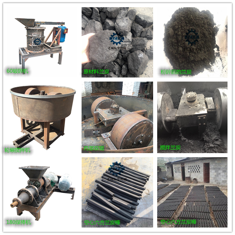 型煤、型炭制棒机*流程图:原料——粉碎——搅拌——制棒——成型