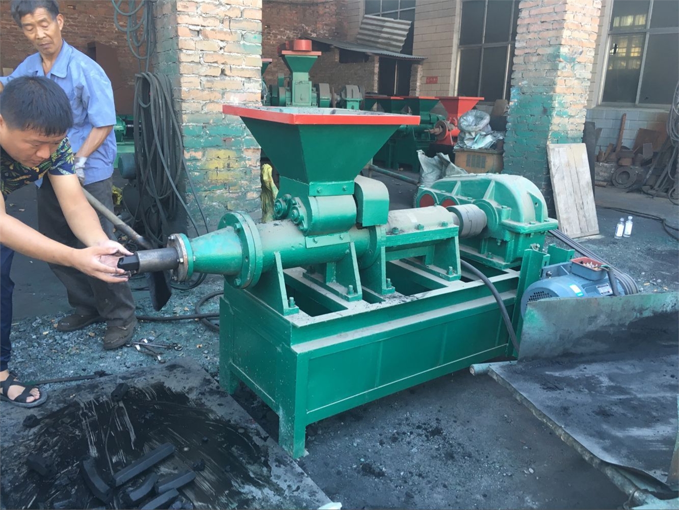 4、煤棒机停机前先停止下料,待物料挤出后停机,用水清理其内部;