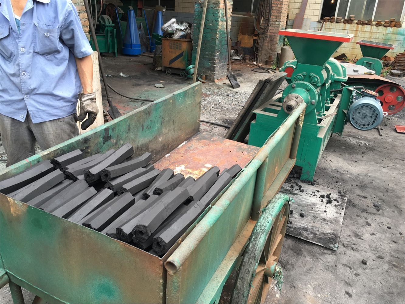 6、煤棒机下料口涌现阻塞,需要用独木或者竹条疏浚,切忌运用非金属棒。