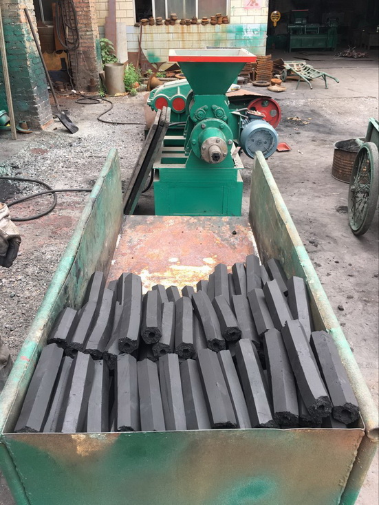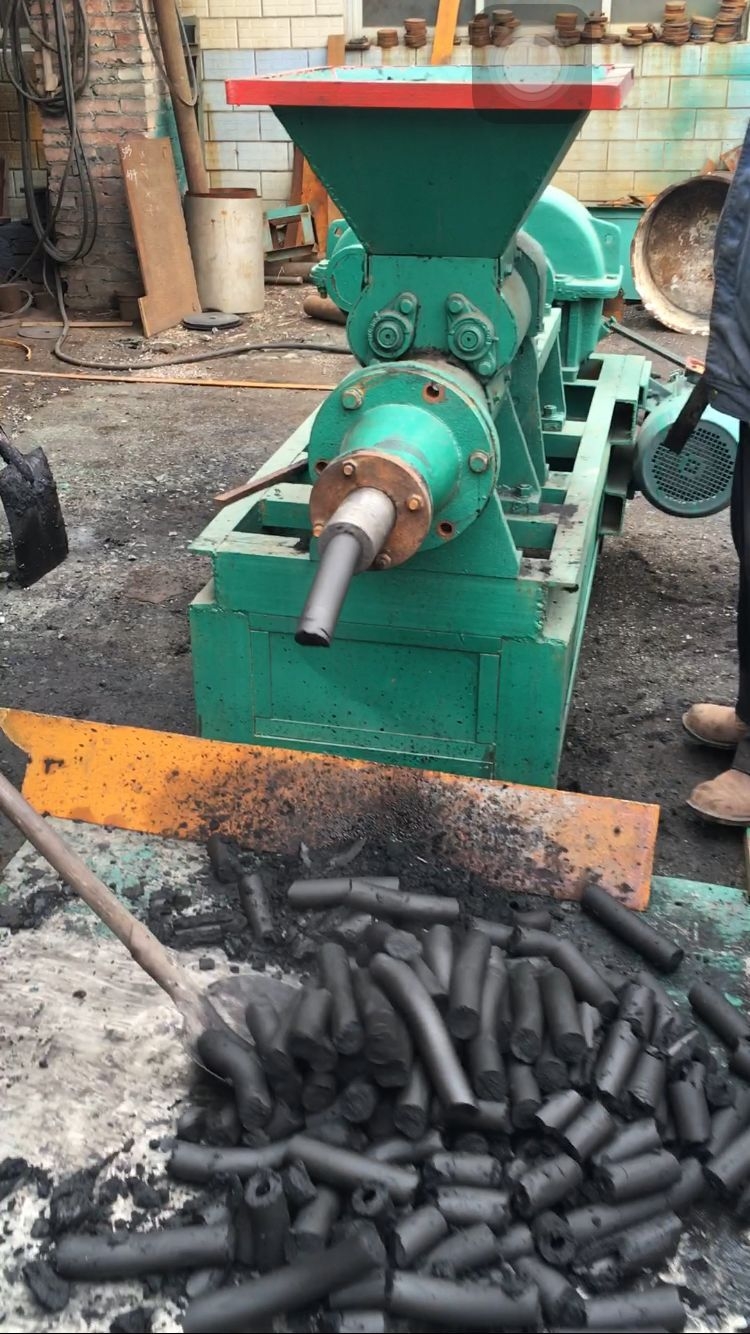 煤棒机是粉末状原煤制成部同形状条形块的机具。其工作原理是:电动机经三角皮带把动力传给变速器,变速器输出轴通过浮动联轴器把动力传给推进轴,推进轴上的推进器推动煤料经成型模头推出,便*出理想的高压煤棒。